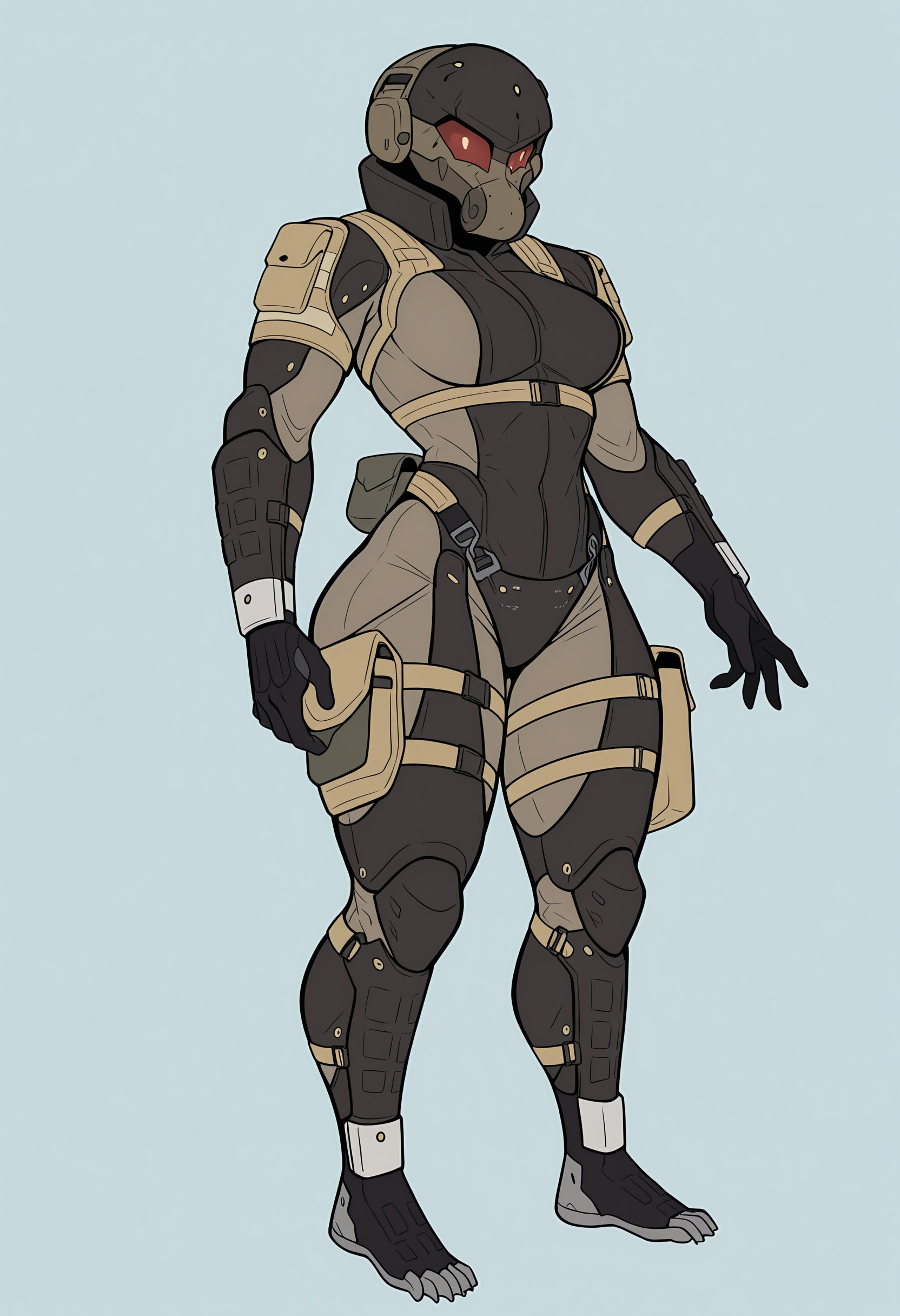 score_9, score_8_up, score_7_up, score_6_up, score_5_up, score_4_up, 1girl, lora:HavenTrooper:0.85 large breasts, bodysuit, helmet, mask, red eyes, glowing, faceless, standing, looking at viewer, hands on breasts, side view, leotard, bare legs,