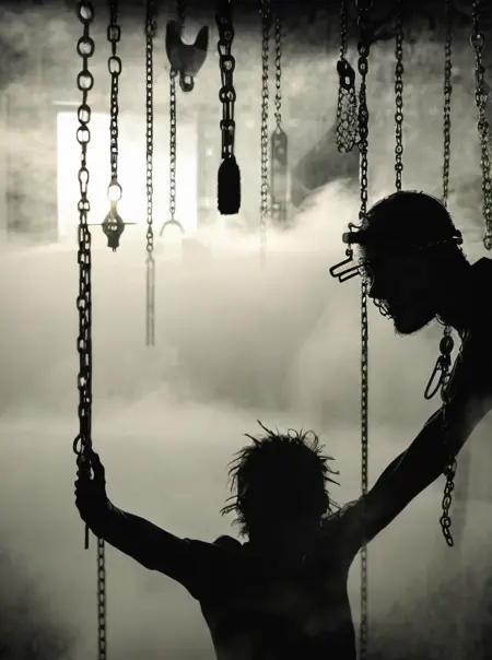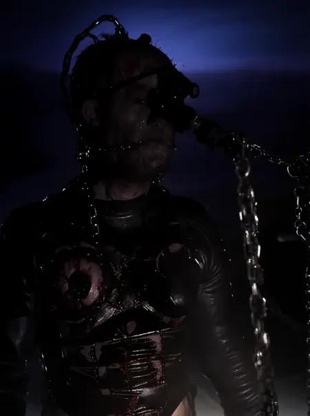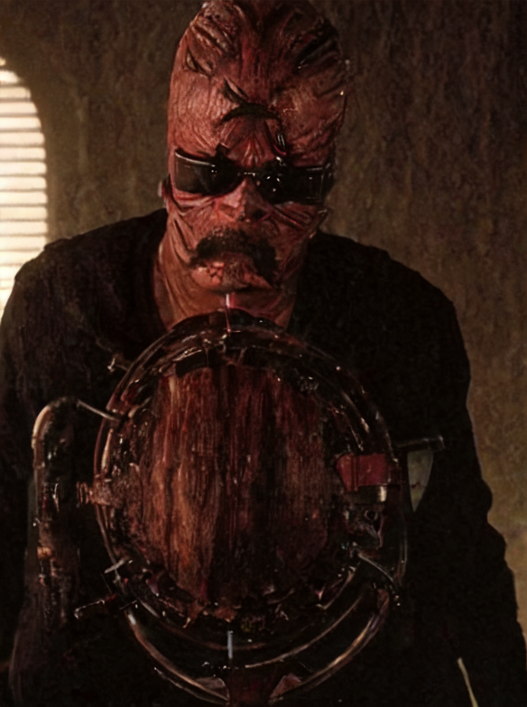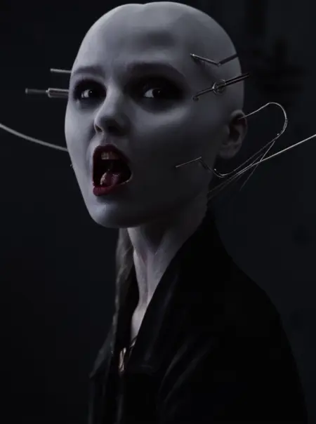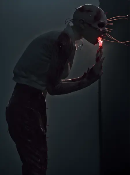 A prompt might be something like: cenobyte, male, close-up, complicated, deformed, side lit, masterpiece, rotting, mangled, horror, wounds, window blinds, scary, evil, skin indentation
