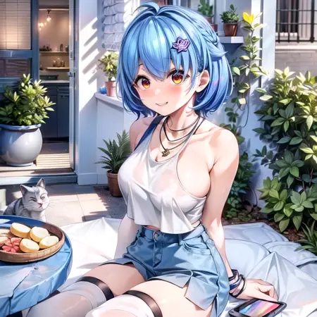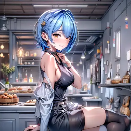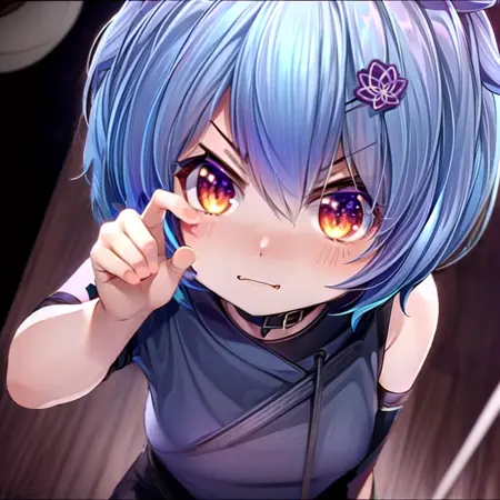 {锁骨|项链|手镯|项圈|发夹|呆毛|珠宝|耳机|蓝色指甲|猫耳|头发遮住眼睛|眉毛透过头发可见},