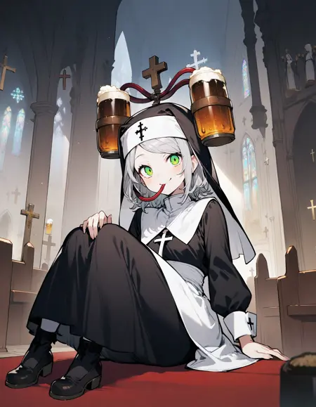 我投入了巨大努力,使这个 LoRA 尽可能灵活(毕竟这是 v2.8.2)。你可以使用多种头饰 + 饮料的组合。默认情况下,头饰为 棒球帽,饮料为 啤酒罐。但其他组合也是可行的。以下是一些示例: