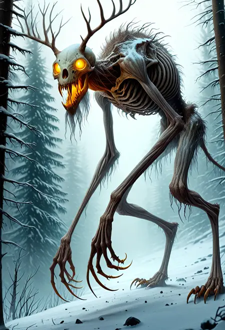 此 LoRA 用于生成传奇生物温迪戈,非常适合创作恐怖怪物图像。