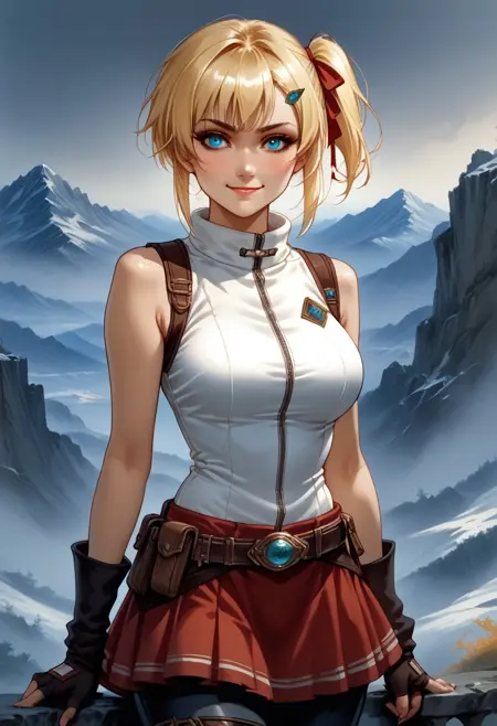 随意风格提示词:1girl, Emma brightness, \(The Hidden Dungeon Only I Can Enter\), blonde hair, blue eyes, short hair, hair ribbon, side ponytail, hairclip,