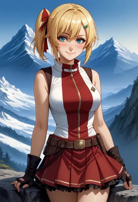 随意风格提示词:1girl, Emma brightness, \(The Hidden Dungeon Only I Can Enter\), blonde hair, blue eyes, short hair, hair ribbon, side ponytail, hairclip,