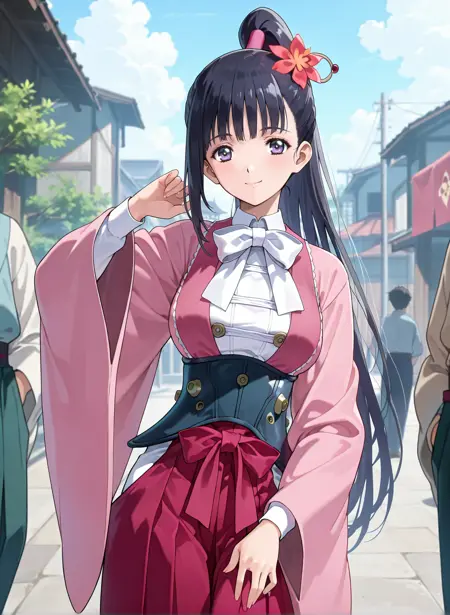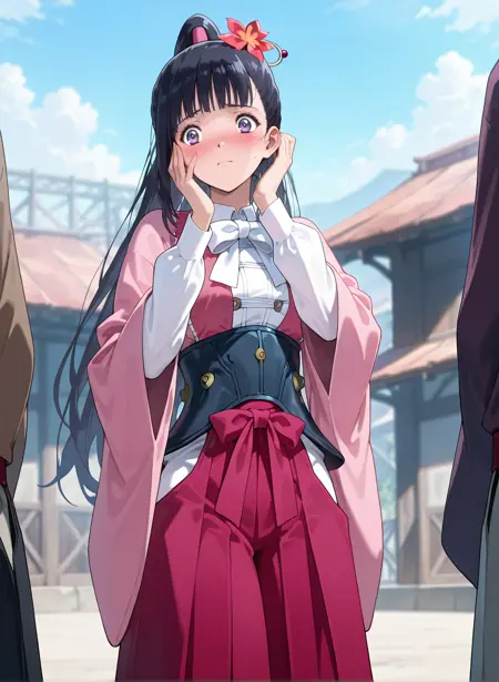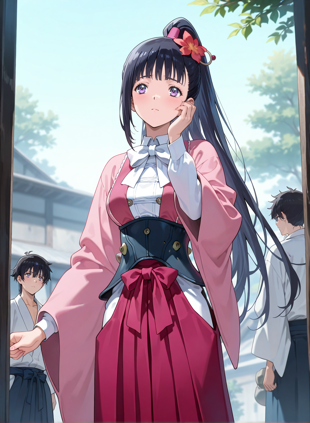머리 장신구, 머리 꽃, 일본 복장, 리본 넥타이, 치마, 셔츠, 긴 소매, 하카마 치마, 부츠