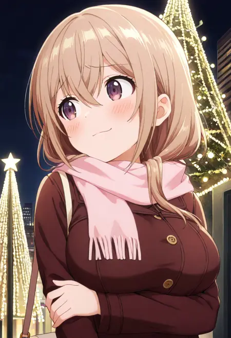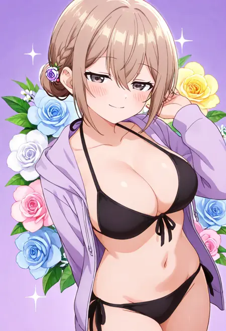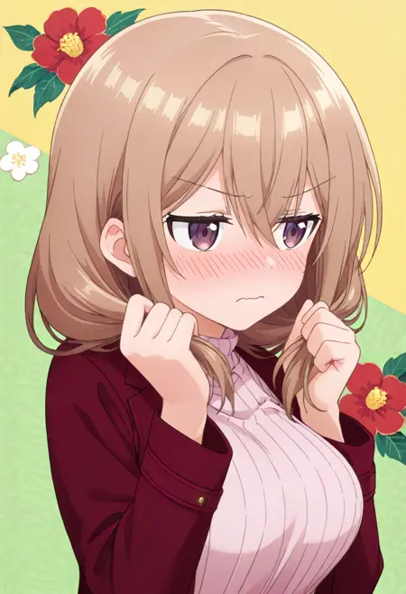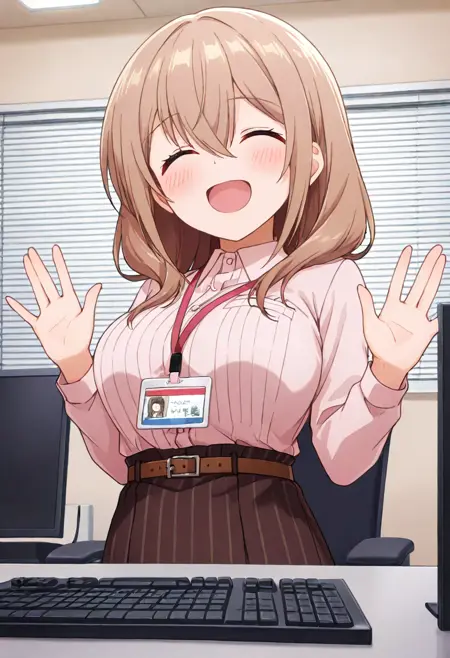 katase shiori, 棕色头发, 浅棕色头发, 中长发, 头发下可见眉毛, 侧发, 头发遮住眼睛, 棕色眼睛, 紫色眼睛, 大胸部商务着装 1 / OL服 1