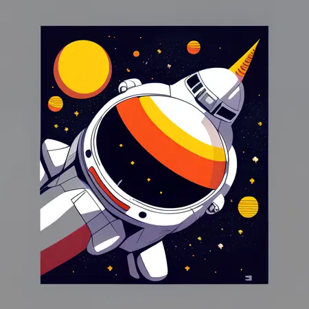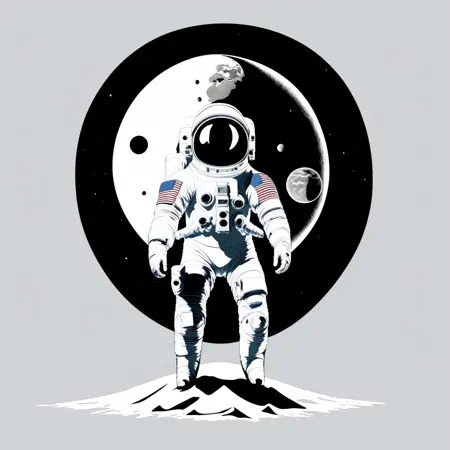 サイバーパンクな宇宙飛行士が宇宙を飛行中(黒い背景:1.4)を、<MAGIFACTORY>アートスタイルのTシャツロゴとして