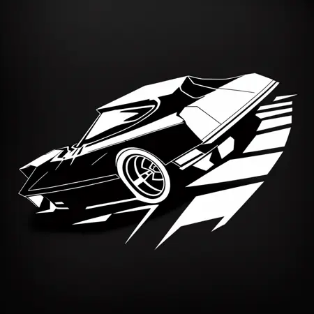 車のシンボル(黒い背景:1.2)をTシャツロゴとして、<MAGIFACTORY>アートスタイルで