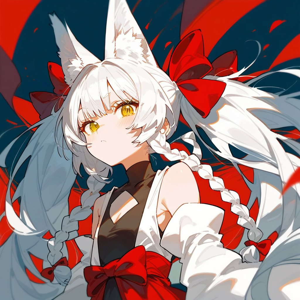 asanagi \(azur lane\), yellow eyes, white hair, short eyebrows, twintails, fox ears, braid,