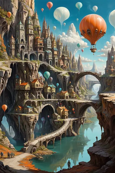 超現実主義のスタイルで、城や都市の素晴らしい風景