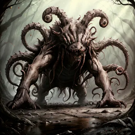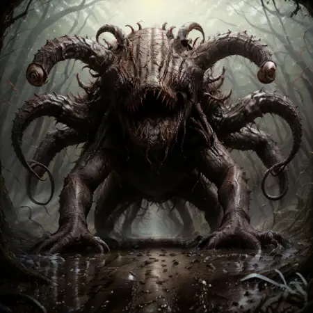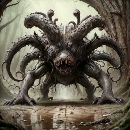 さまざまな付属物を持つ恐怖の存在、アズグワドは何かとすれば間違いです。しばしば混沌をもたらすために世界に放たれ、複数の目茎から神秘的な光線を敵に放ち、その後触手で打ち据えて、犠牲者を巨大な口に吞み込みます。アズグワドには優しさなど一切ありません。さらに被害を及ぼす前に、できるだけ早く破壊するのが最善です。