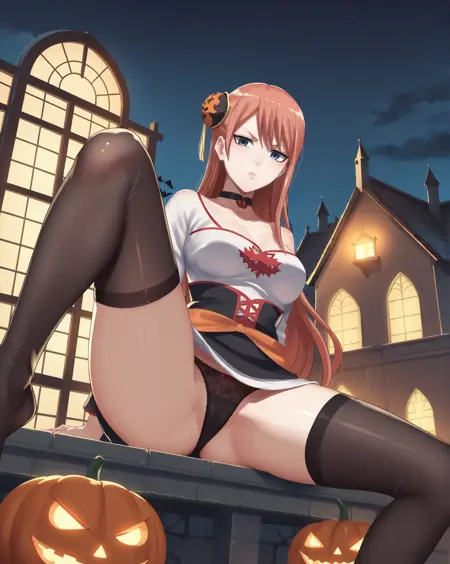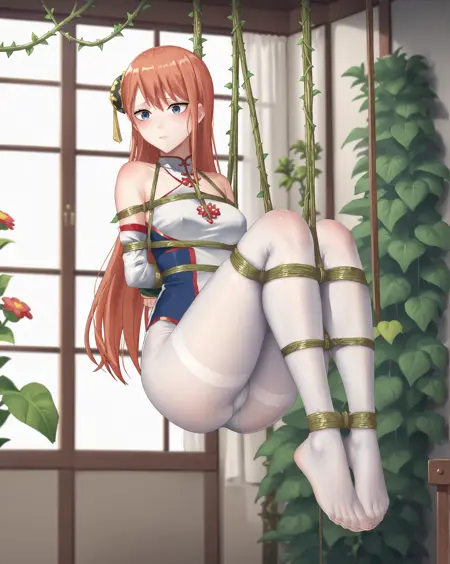 衣装: 白い中国風の服、非対称な服、黒い手袋、不均等な手袋、黒い太ももハイズ