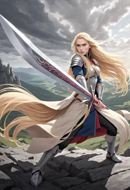 稳定性/一致性:低,需多次生成。“sheath, sheathed, katana,” 等词有助于某些检查点的稳定。