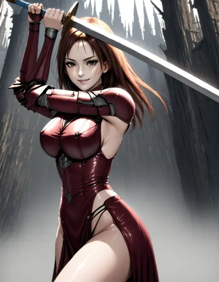 안정성/일관성: 낮음, 여러 번 생성 필요. "sheath, sheathed, katana" 등의 단어는 일부 체크포인트에서 도움이 됩니다.