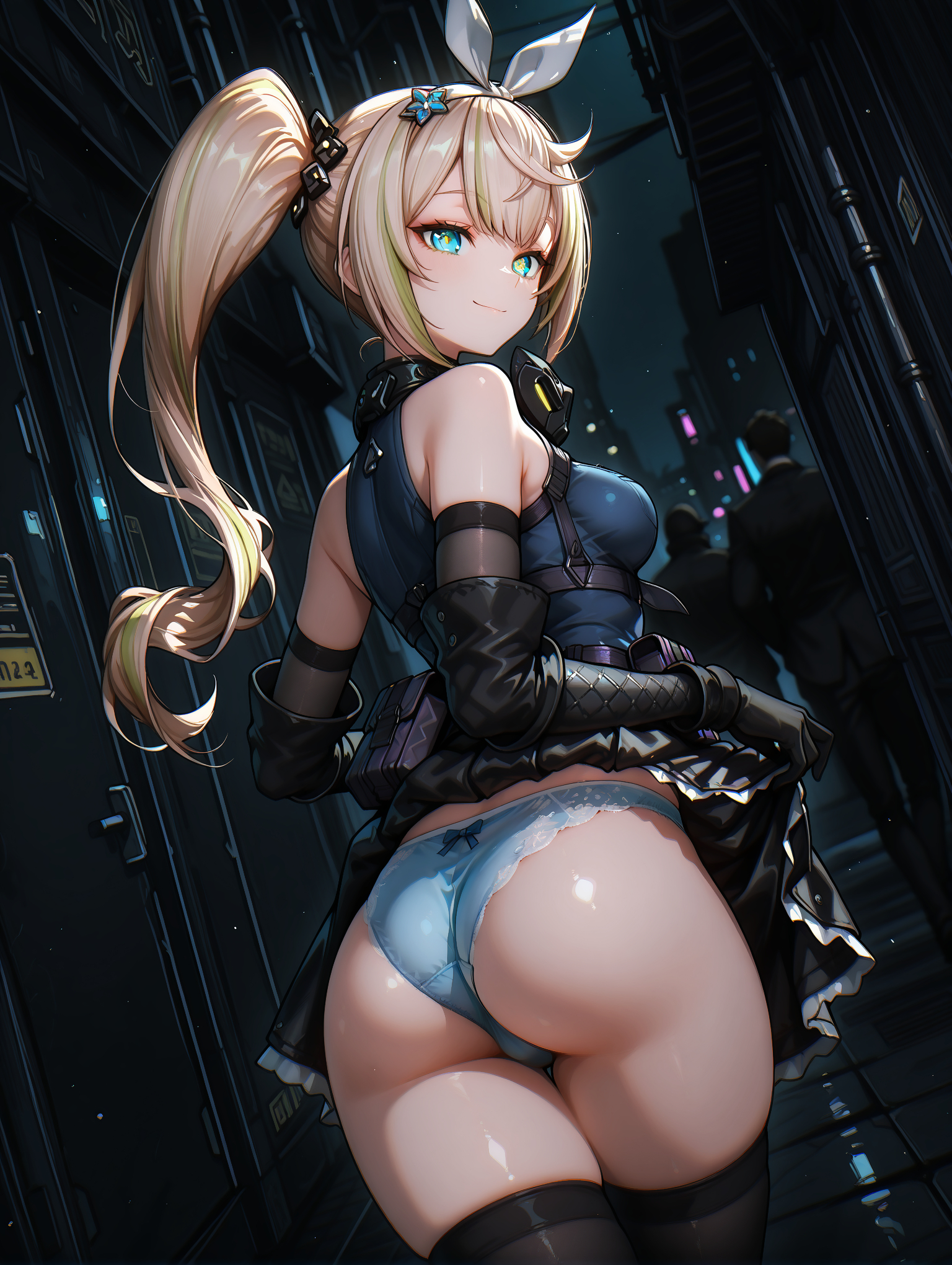 オプションプロンプト:blue panties, thighhighs skindentation