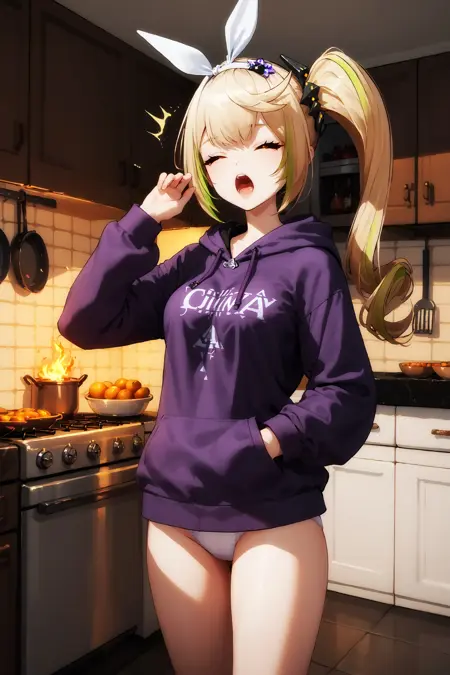 この重みは、彼女の衣装やヘアスタイルを生成する際に推奨されます。オリジナルの衣装を生成せず、外見を大きく変更したい場合は、やや重みを下げても構いません。