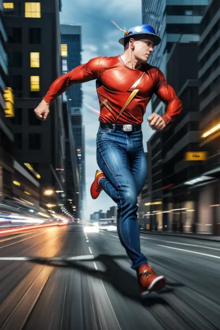 --バージョン1は、特に年齢の高いフラッシュの画像を生成する際、伝統的なコミック風の大きな雷稜模様よりも、ジョン・ウェスリー・シャープ/CW版の衣装を好んで採用します。現代のストーリーと1940~50年代のものを両方使用したため、適切なプロンプト次第で若年版と高齢版の両方を生成できます。ヘルメットの描写には課題があります—ヘルメットの小さな翼を正しく生成するには、試行錯誤かインペイントが必要です。