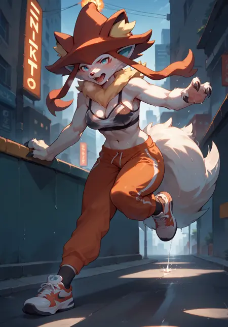 キャラクターの帽子については、モデルはそれを髪の毛と認識します。したがって、帽子を外したい場合は、LoRAの強度を0.6、あるいは0.5に下げてから、お好みの髪型を追加してください。