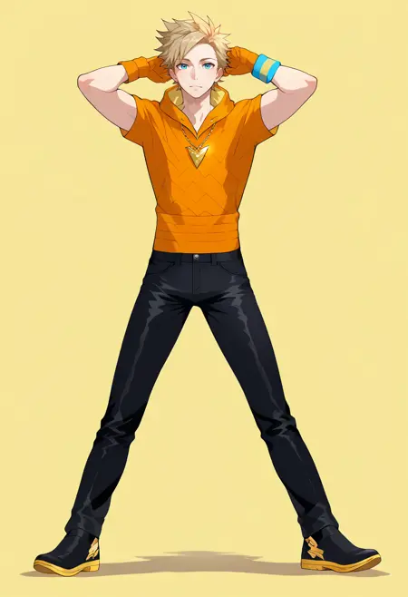 spark_pokemon, blonde hair, blue eyes,