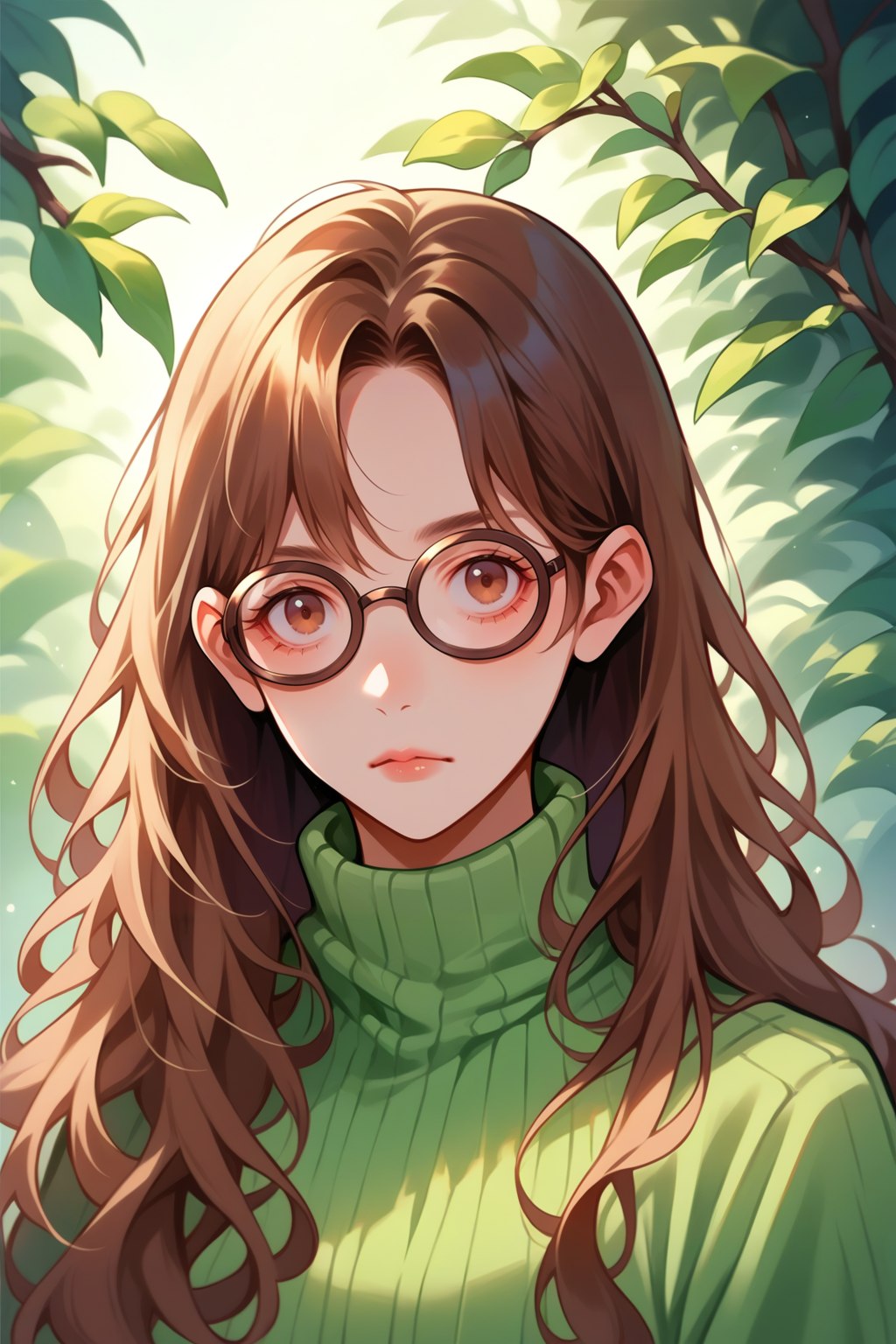 主提示:NSAlicePortia, 棕色头发,长发,棕色眼睛,齐刘海,眼镜