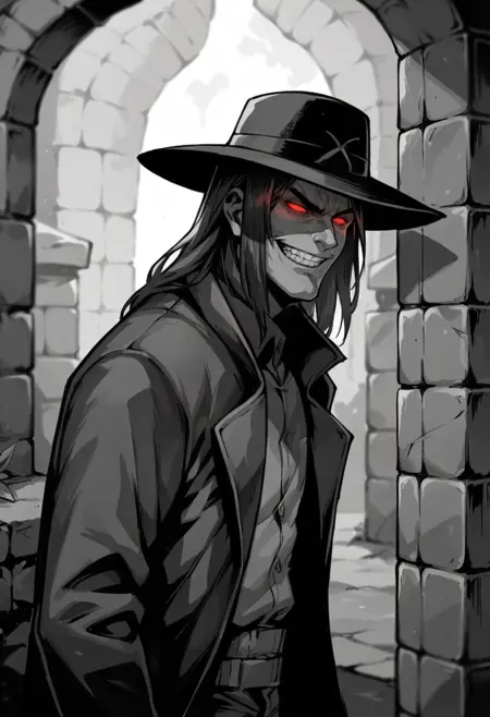 其他有用标签:宽边帽, 恐怖, 牙齿, 微笑, 邪恶微笑, 嘲弄微笑