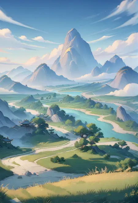 训练一个专门用于仙侠背景画风的二次元小模型,模型为SDXL模型,推荐使用大模型animagineXLV31_v31。