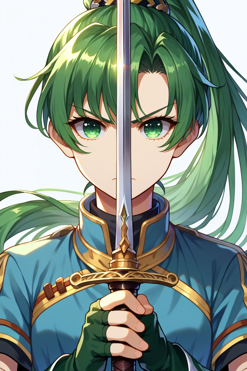 『ファイアーエムブレム 炎の紋章』のリン(またはリンドイス)。Pony Diffusion V6 XL でトレーニング済み。強度0.8-1.0でテスト済み。