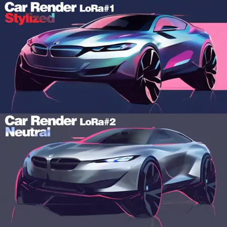 Automotive Design 2D Rendering LoRa Model (characterized by a strong individual style)