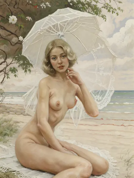 이 LORA는 파울 피셔의 해변에서의 여성 누드 목욕场景 스타일을 재현하도록 학습되었습니다.