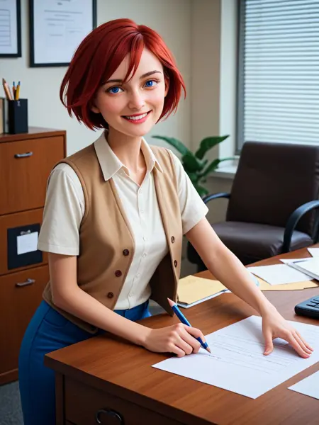 ヘルパータグ: 赤髪、短髪、青い目、瞳孔なし