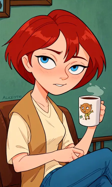 短命に終わったアニメーション情景劇『The Critic』より、ビッグアップルの南部ビューティー、アリス・トムキンズ。シリーズを通じての複数のスクリーンショットからトレーニング。