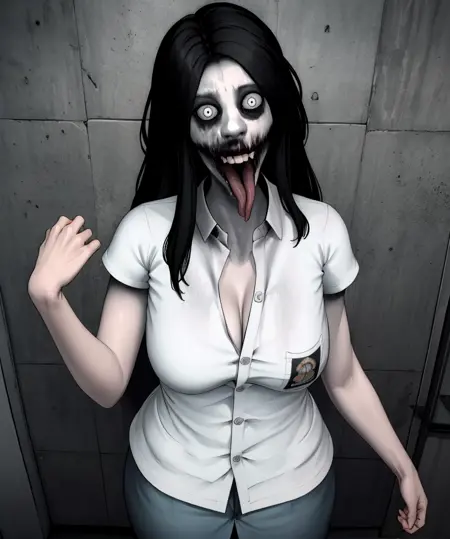 호러 얼굴 키워드를 사용할 때는 타액, 호러, 큰 입, 긴 혀, 혀를 내밀음, 상처, 흰 눈, 좀비 소녀 등 창의적인 표현이 필요할 수 있음