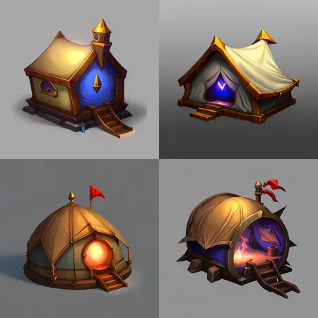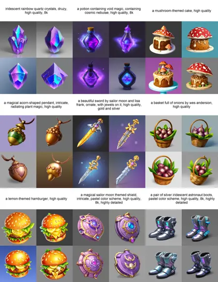 generates icons inspired by fantasy games with mostly plain backgrounds