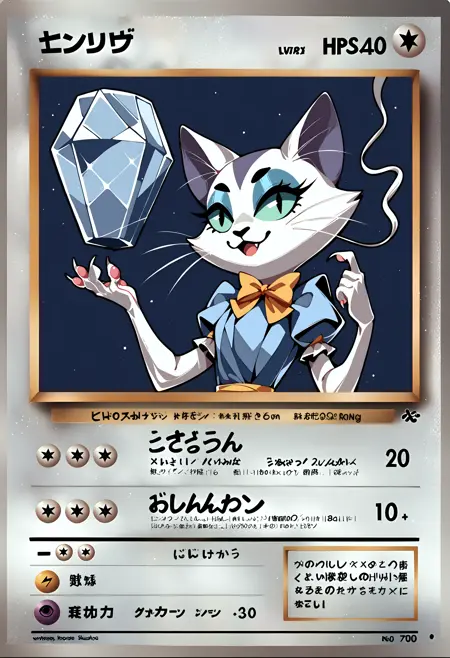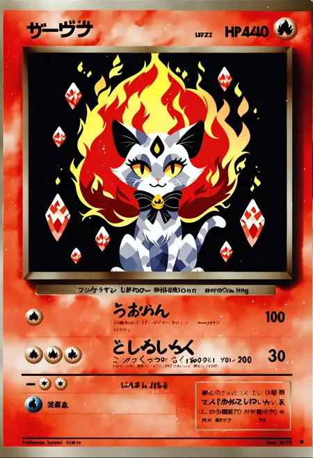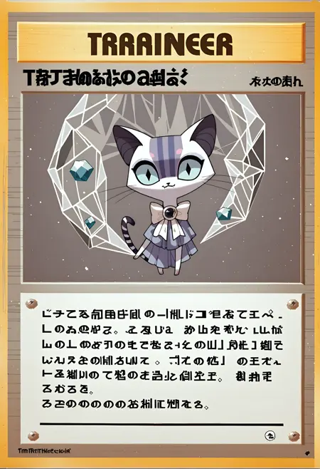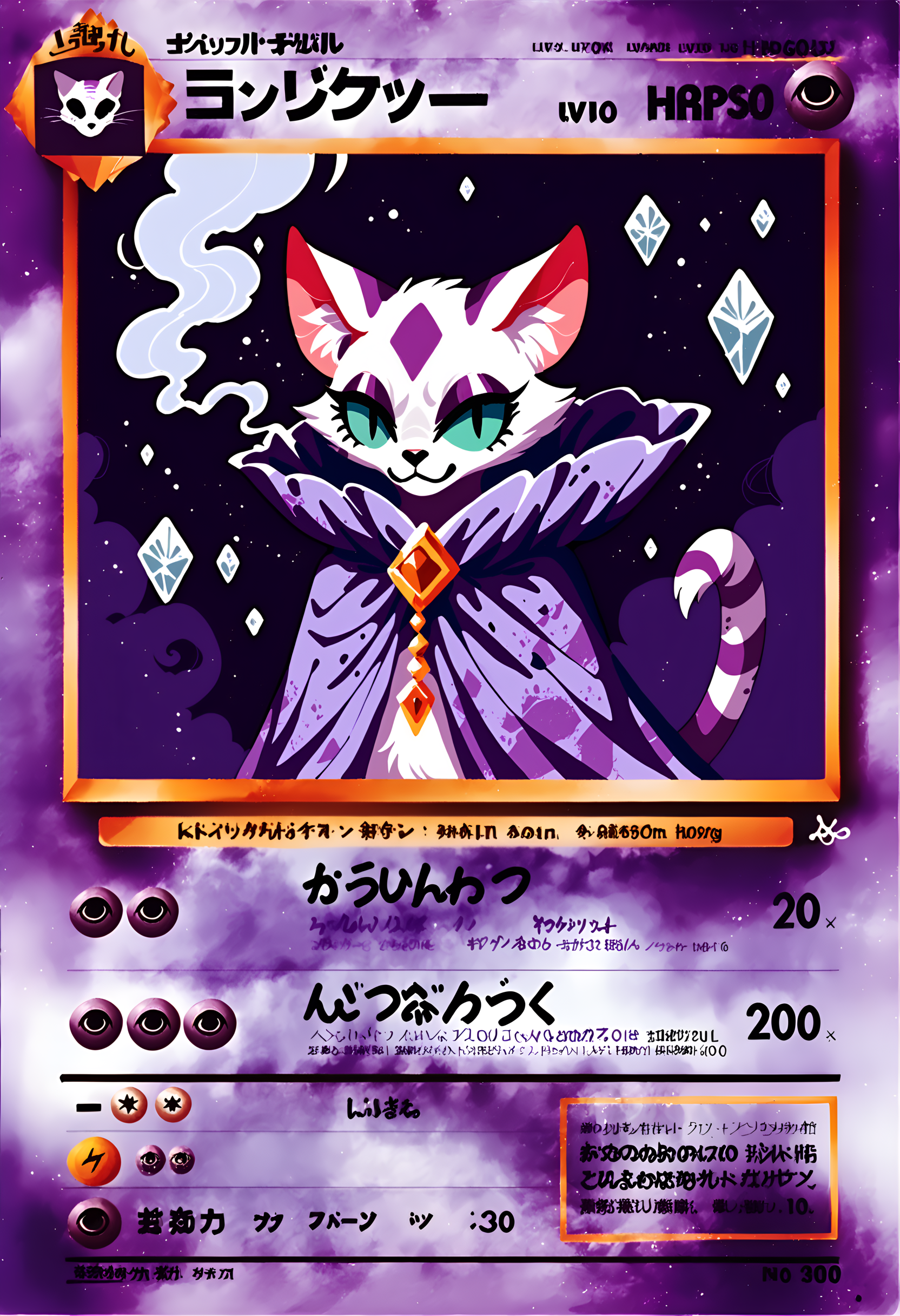 このLoRAは、クラシックなGen 1のポケモンカードのようなスタイルを学習しています。レイアウトや要素の比率は常に完璧になるとは限らず、モデルの強度を1.00より低くすると(私がテストしたところ、0.90ではカードを背景にしたクールなフルアートオーバーレイのような効果が得られました)、期待したように動作しない可能性があります。