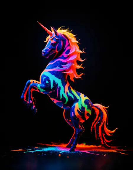zavy-flrscnc 是必需的触发词。建议同时使用其他术语,例如:fluorescent, fluorescent dust, fluorescent spraypaint, glowing dust。这些词将有助于增强LoRA的效果,否则你可能得到一张平淡无奇的图像。