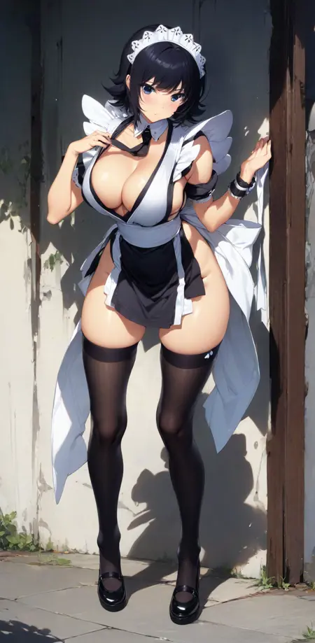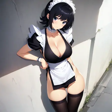 Activate the lora using "iroha(qgsc)" tag, followed by "breasts, solo, thighhighs, black hair, cleavage, large breasts, short hair, flipped hair, maid, maid headdress" tag. If your A1111/ForgeUI can't detect it, force call it using