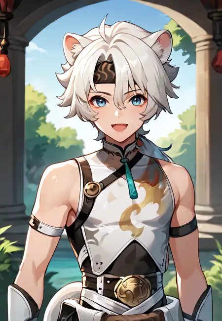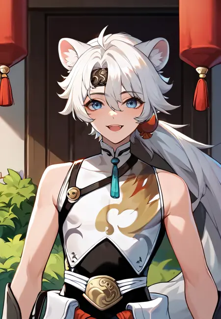 트리거 + 외모: lingyang, 흰 머리, 흰 머리, 얼굴 무늬, 동물 귀, 꼬리, 파란 눈 (필요 시 시도해 볼 필요 없음)
