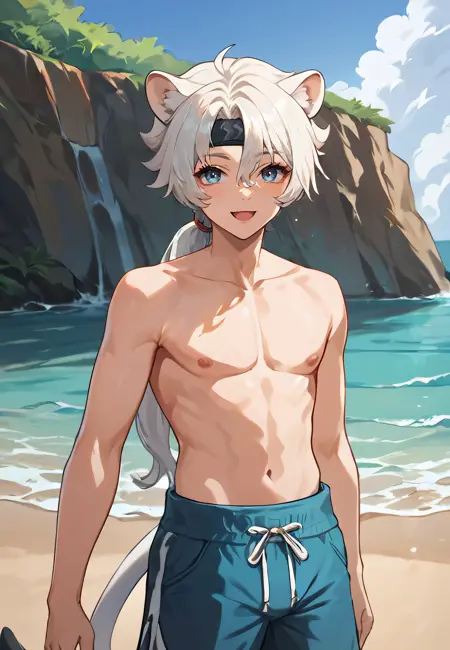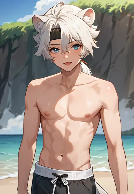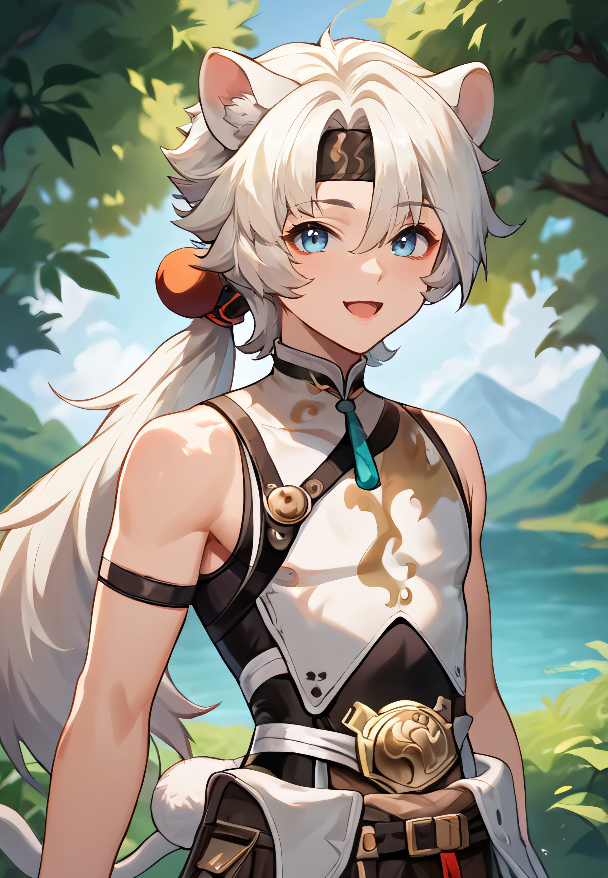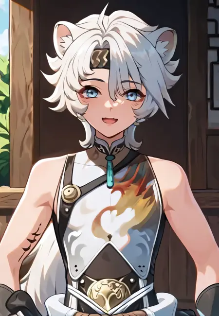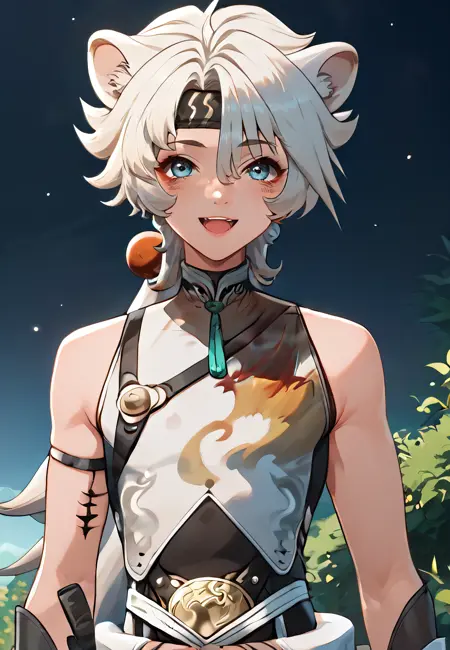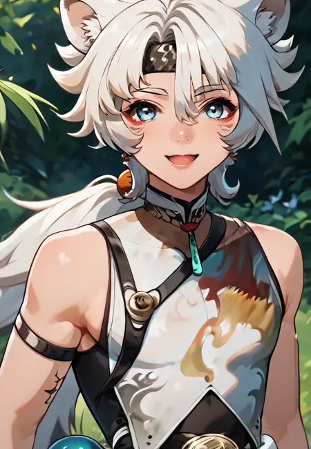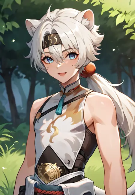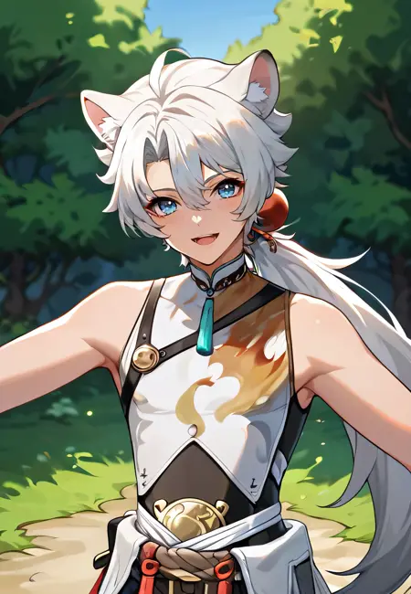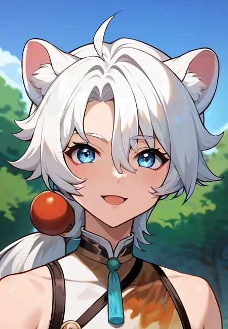触发词 + 外观: lingyang, 白发, 白发, 面部标记, 动物耳朵, 尾巴, 蓝色眼睛(非必要,无需尝试查看)