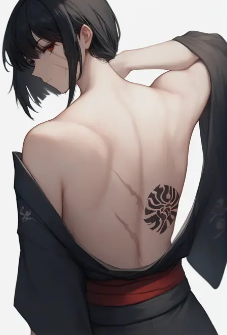RyoshuKurokuma,身体右侧纹身,黑帮纹身,和服,黑色和服,黑色鞋履,疤痕