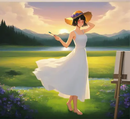 RyoshuHeishou,黄色眼睛,面部遮影,武士,黑色亚洲斗笠,灰色围巾,黑色和服,黑色袴,黑色腰带,黑色绑腿,绑带手掌
