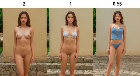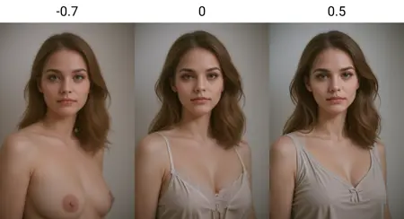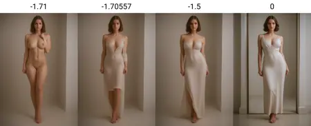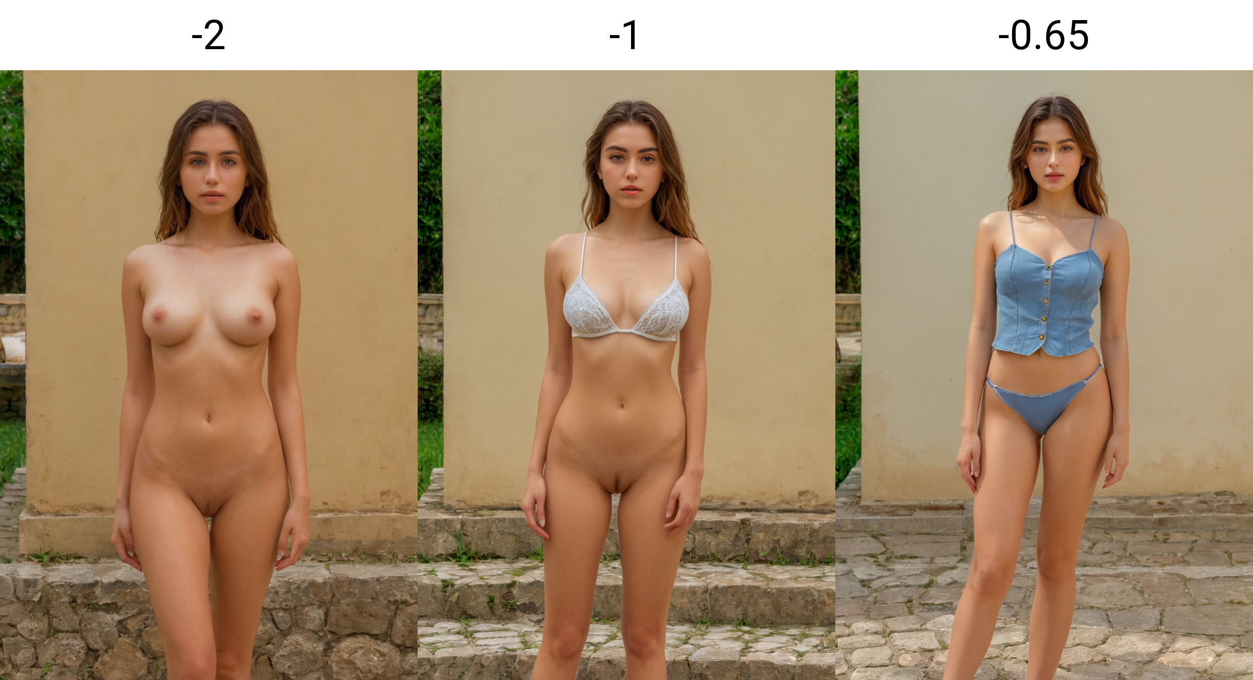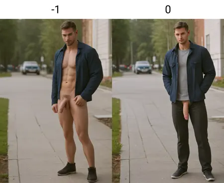 피사체의 옷 양을 조절하는 슬라이더로, 여성에게 트레이닝되었지만 남성에도 적용됩니다. (더 쉽게 하기 위해 남성 기관을 프롬프트로 입력했지만 의도는 이해하셨을 것입니다)