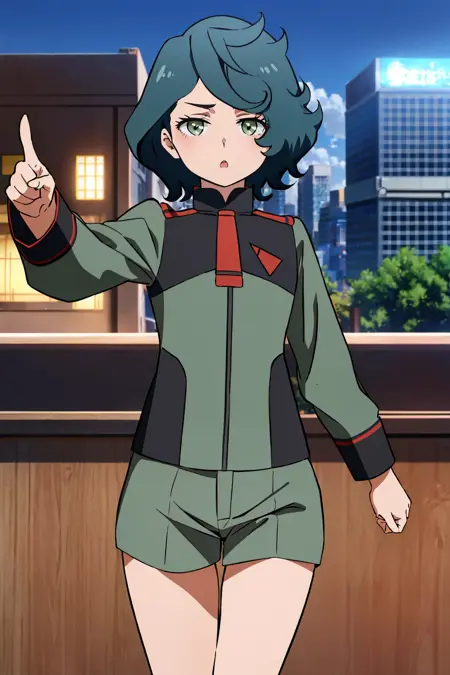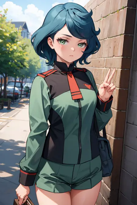 학교 유니폼을 원하면 "녹색 재킷, 짧은 넥타이, 긴 소매, 녹색 반바지"를 추가하세요.