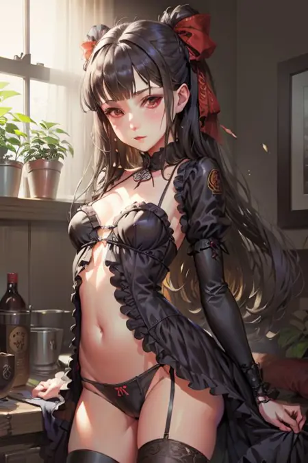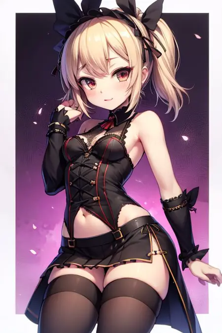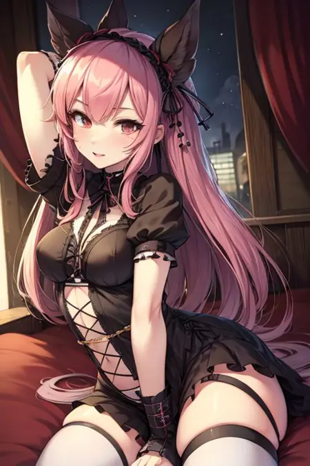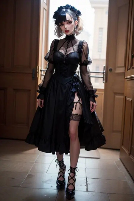 使用 #goth_fashion 标签在数据集上进行 LoRA 训练。在第二个版本中,添加了一个服装元素——#thighhighs 标签。
