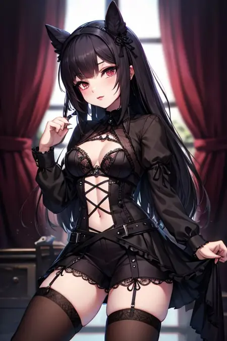 LoRA training on the dataset using the #goth_fashion tag. In the second version, a clothing element was added - the #thighhighs tag.