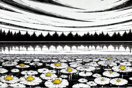 Kitamurashu makes beautiful and detailed illustrations of a fictitious coffeeshop. Their art is exclusively monochrome with these yellow spots for contrast and tend to contain cluttered rooms and girls in maid outfits.
