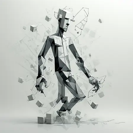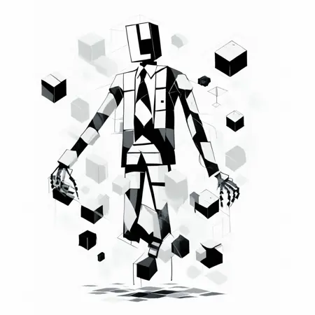 우스꽝스럽고 기묘한 큐브 인형을 만들며, 추상적으로 풀렸다 다시 맞춰진다