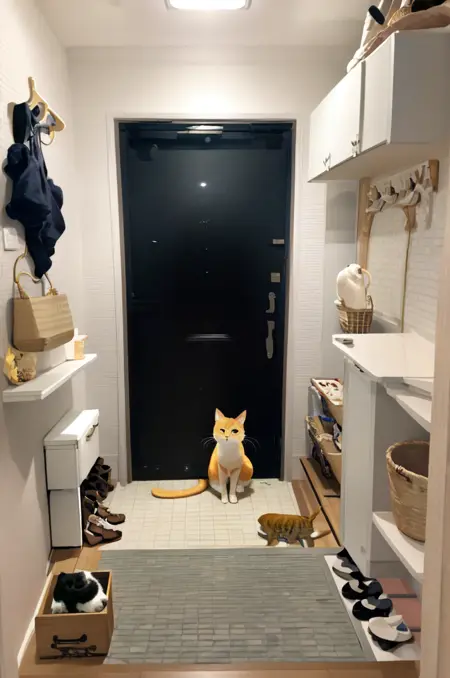 ※看来模型学习“在玄关脱鞋”这一概念仍有困难。