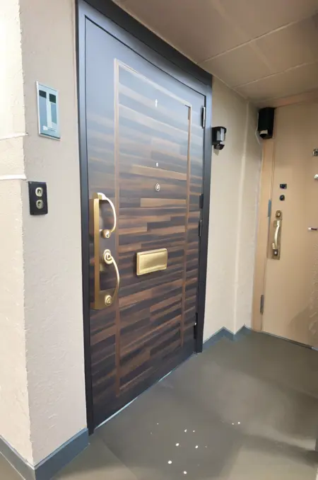 公寓楼的玄关(从屋内看) 公寓楼入口(从室内视角)