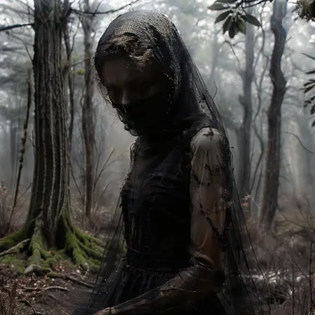 Alantha 是一种古老的恶魔生物,形似一位被面纱笼罩的女子,所到之处皆留下疯狂与混乱。有传言称她正是苍白之夜,一位Obyrith恶魔领主,恶魔之母,白发女士。她身披黑白相间的灵异织物,但无人应得见其真容(因此请保持模型贡献值较高,如0.7至0.9)。她可能以普通女子的形态出现,但直视其面容将导致永久性死亡,因此若可能,请务必使用veil(面纱)和hood(兜帽)关键词。
