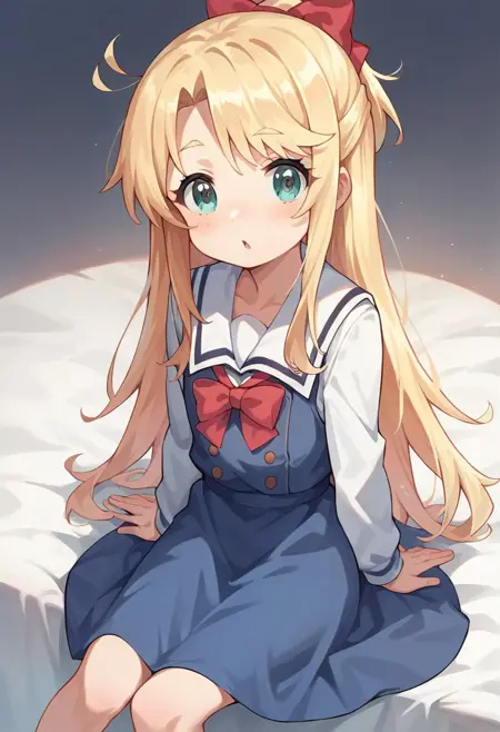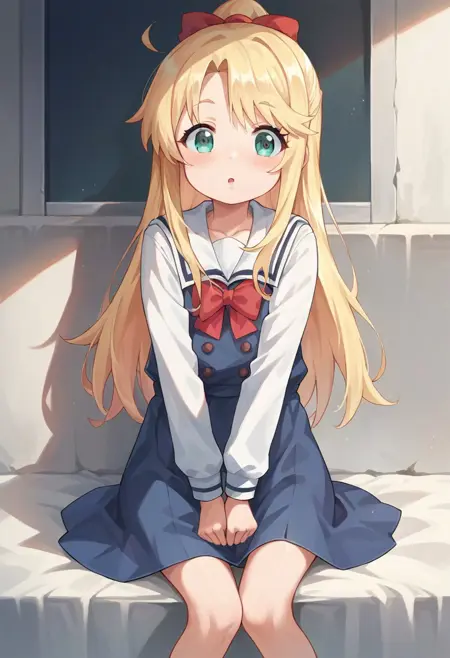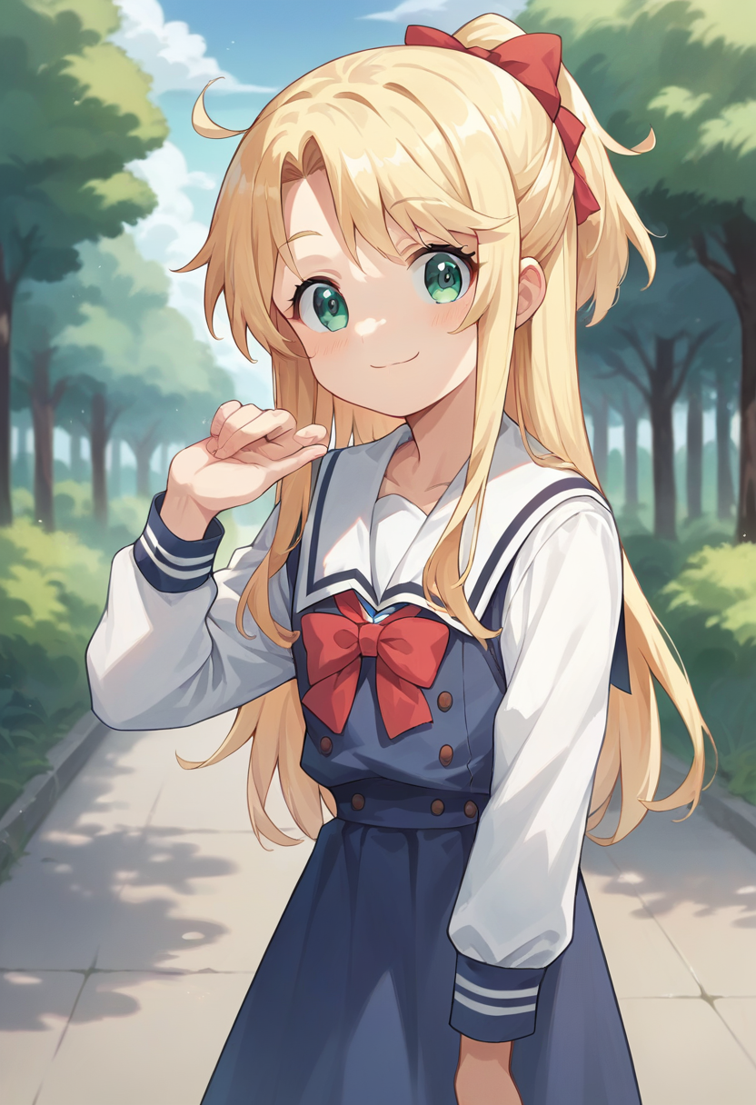 score_9, score_8_up, score_7_up, source_anime, masterpiece, 1girl, ctianhimesaka, sailor dress, neck bow, white shirt, sailor collar, long sleeves, looking at viewer,