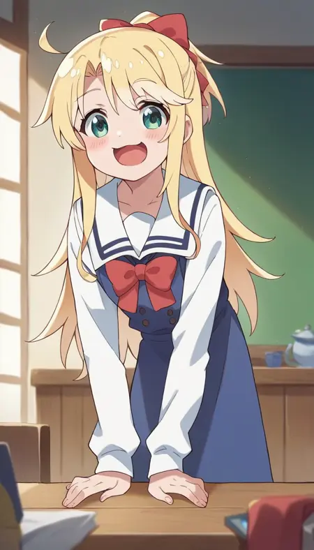 score_9, score_8_up, score_7_up, source_anime, masterpiece, 1girl, ctianhimesaka, sailor dress, neck bow, white shirt, sailor collar, long sleeves, looking at viewer,